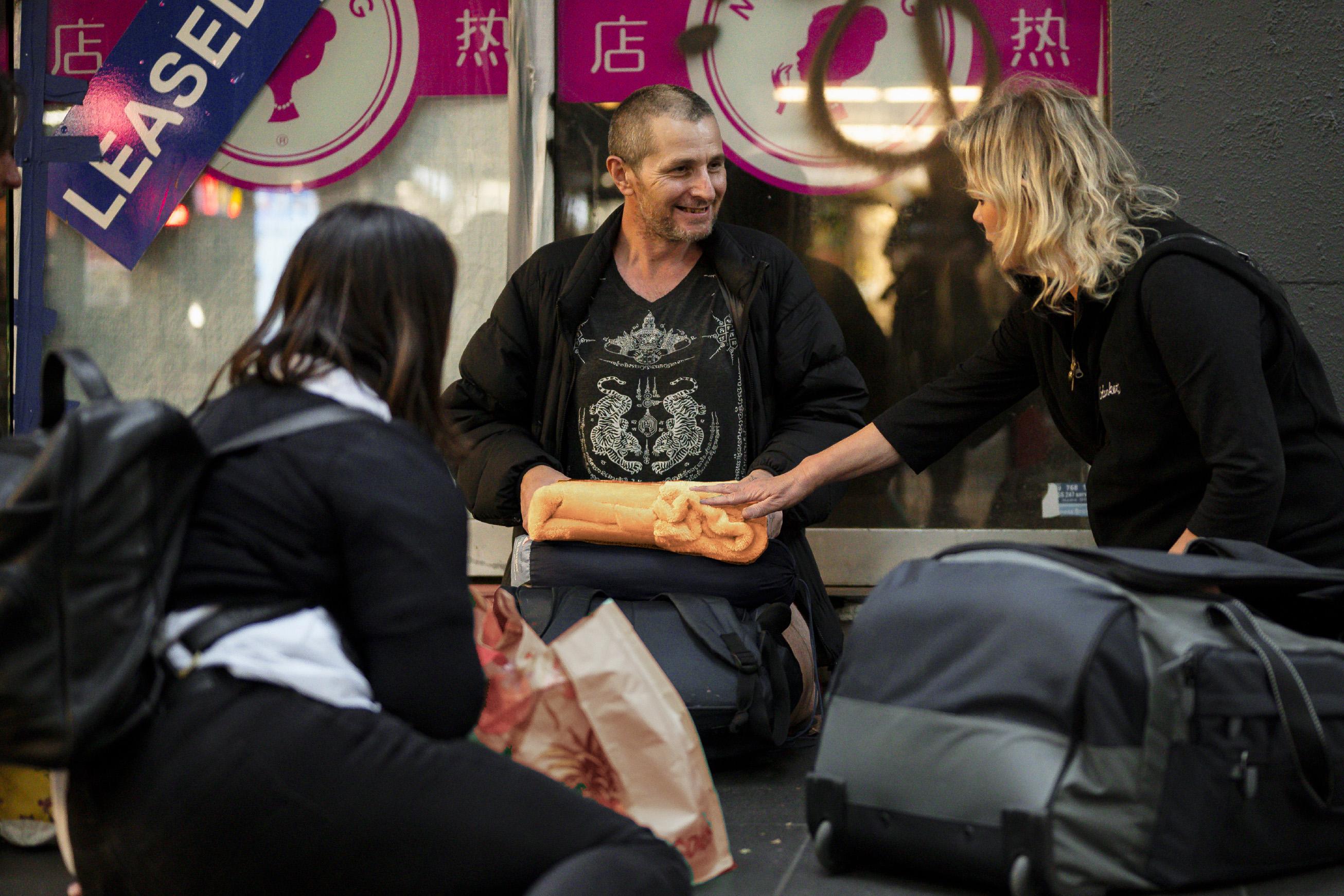Every Outreach evening, the team carry a variety of emergency material aid such as blankets, toiletries and basic food. These items make an extraordinary impact on the lives of people sleeping rough. Doing more than just providing emergency materials to those we meet, this program allows us to establish supportive relationships, give advice and provide referrals to enhance the likelihood that further supports may help them move off the streets.